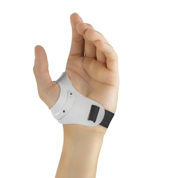 Posiciona y estabiliza el pulgar en una posición adecuada, y permite la libre movilidad de los demás dedos, asegurando la funcionalidad de la mano y su función de agarre. La zona más cercana a los dedos tiene los bordes redondeados garantizando máxima comodidad de uso, mientras que la zona que cubre la articulación trapecio-metacarpiana incorpora un núcleo metálico asegurando una correcta estabilización.